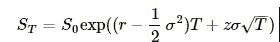 s_t = spot * np.exp((r - 0.5 * vol * vol) * maturity + randomSeries * vol * sqrt(maturity))