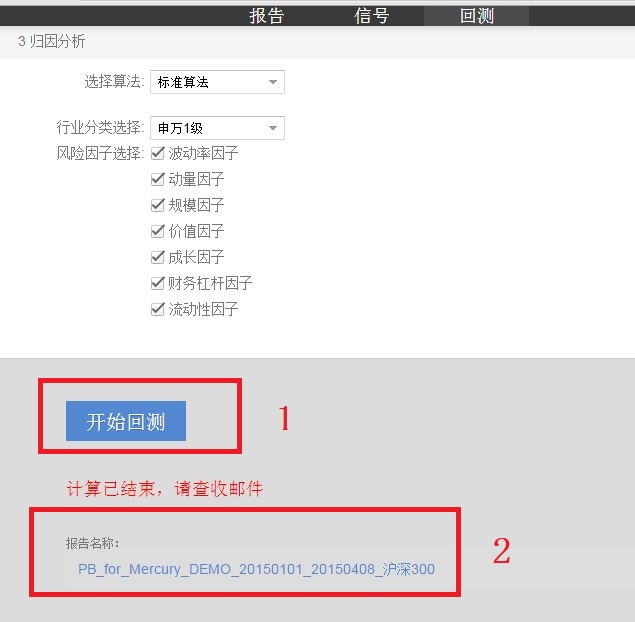 第四步:开始回测,回测完成后,点击报告的链接,查看回测结果;