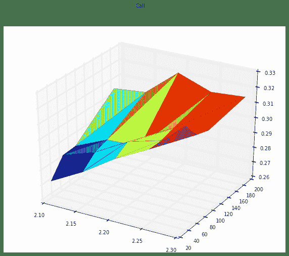 - 上图为Call,下图为Put,此处没有进行任何插值处理,所以略显粗糙