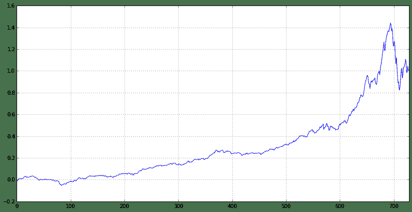 ((bt['portfolio_value']/bt['portfolio_value'][0] - 1) - ((1 + bt['benchmark_return']).cumprod() - 1)).plot(figsize=(14,7))