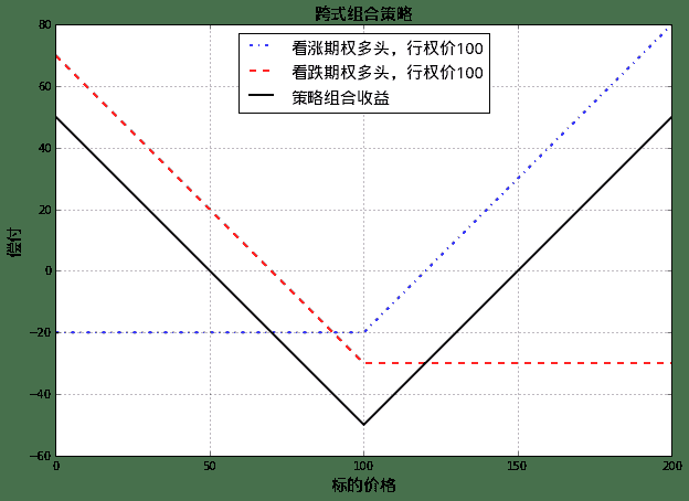 pylab.title(u'跨式组合策略', fontproperties = font)