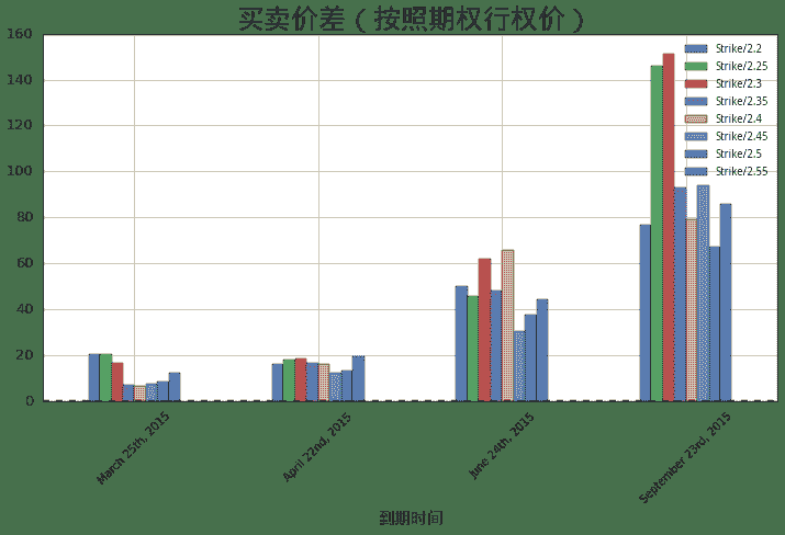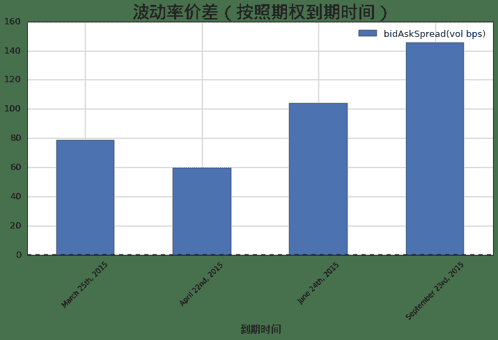 ax.set_title(u'买卖价差(按照期权到期时间)', fontproperties = font, fontsize = 25)