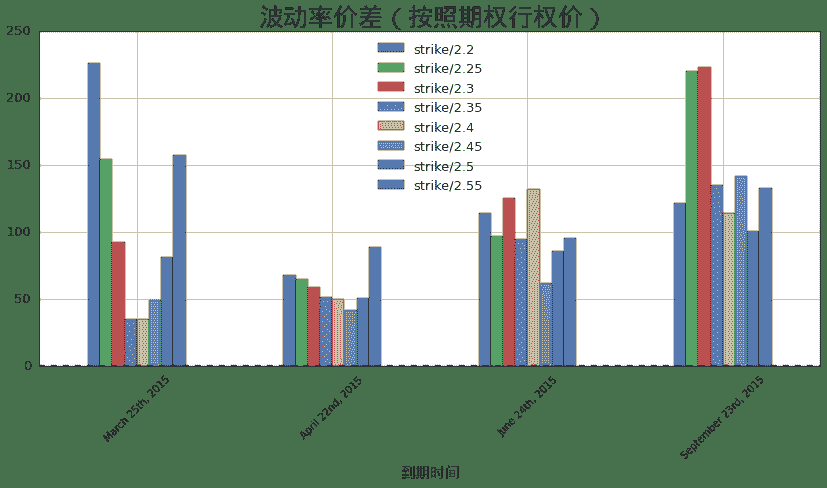 ax.set_title(u'波动率价差(按照期权行权价)', fontproperties = font, fontsize = 25)