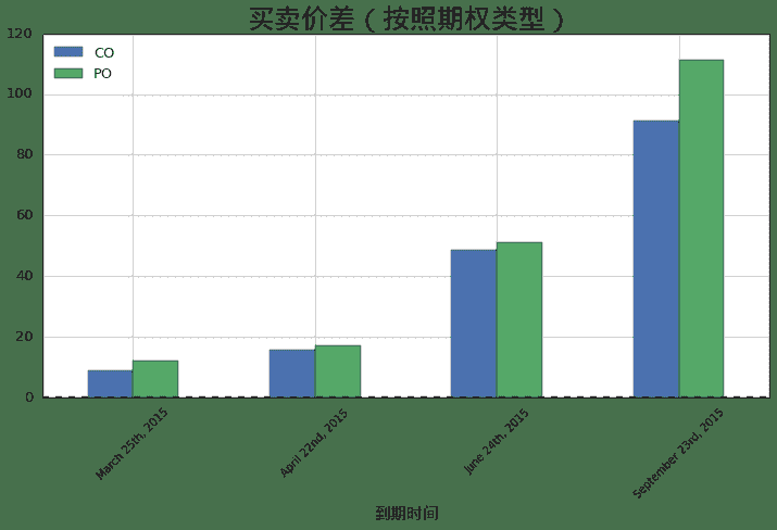 ax.set_title(u'买卖价差(按照期权类型)', fontproperties = font, fontsize = 25)