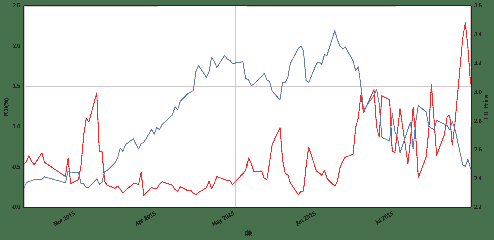 从上图可以看出,每次PC指标的上升都对应着标的价格的下挫