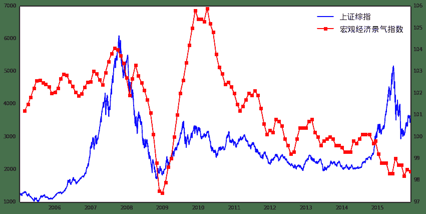 计算了上证综指的月度收益率以及宏观经济景气指数变动的值