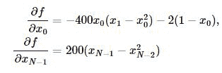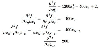 这里可使用共轭梯度近似Hessian矩阵的逆矩阵。下面给出Rosenbrock函数的Hessian矩阵元素通式: