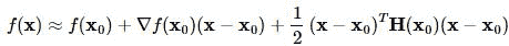 其中H(x0)表示二阶导数矩阵。若Hessian矩阵是正定的,函数的局部最小值可以通过使上面的二次型的一阶导数等于0来获取,我们有: